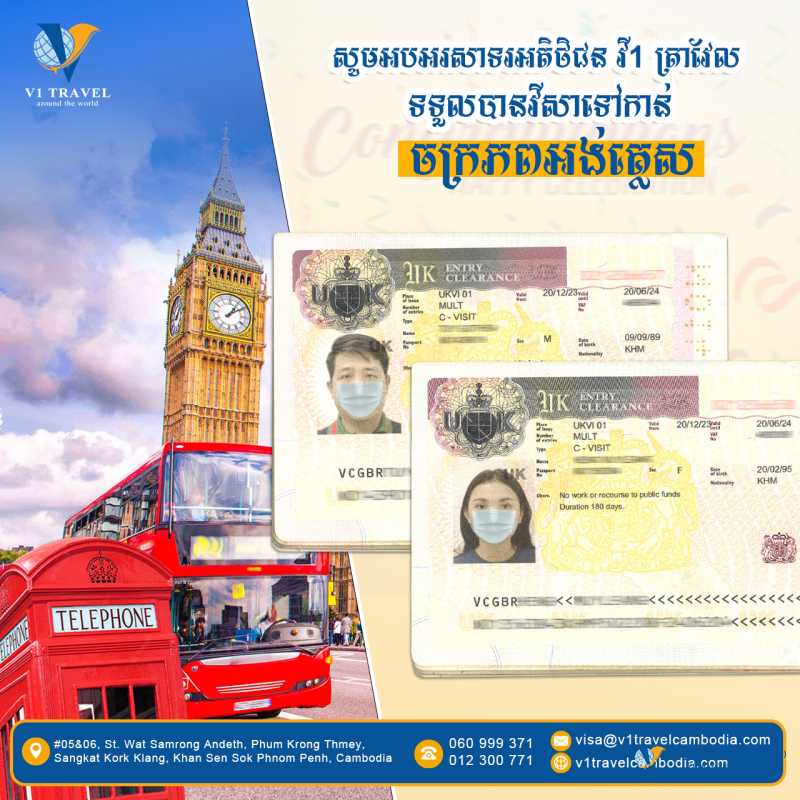 🫰ក្រុមហ៊ុនទេសចរណ៍ វី1ត្រាវែល យើងខ្ញុំមានទទួលប្រឹក្សា និងរៀបចំឯកសារដើម្បីស្នើសុំទិដ្ឋាការទៅ សហរដ្ឋអាមេរិក🇺🇸 ចក្រភពអង់គ្លេស🇬🇧 ប្រទេសបារាំង🇫🇷 ប្រទេសអូស្រ្ដាលី🇦🇺 រួមមាន៖
